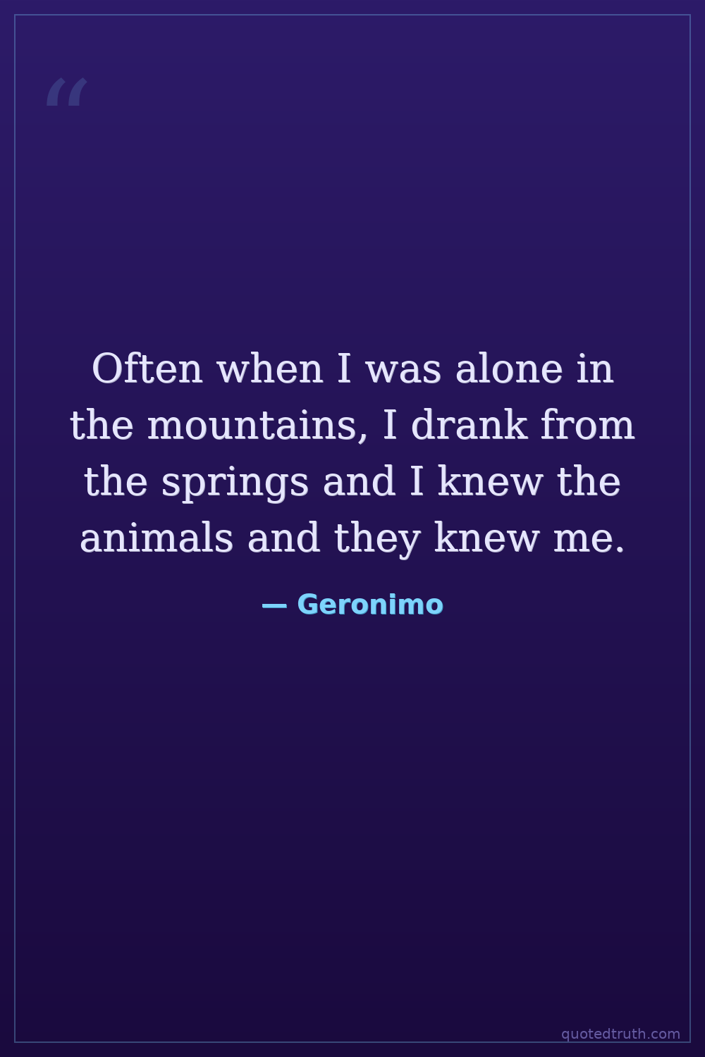 Often when I was alone in the mountains, I drank from the springs and I knew the animals and they knew me.