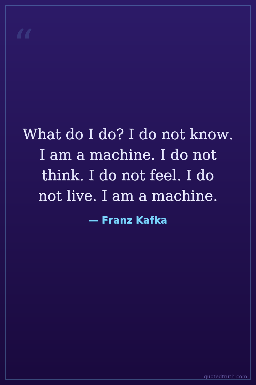 What do I do? I do not know. I am a machine. I do not think. I do not feel. I do not live. I am a machine.