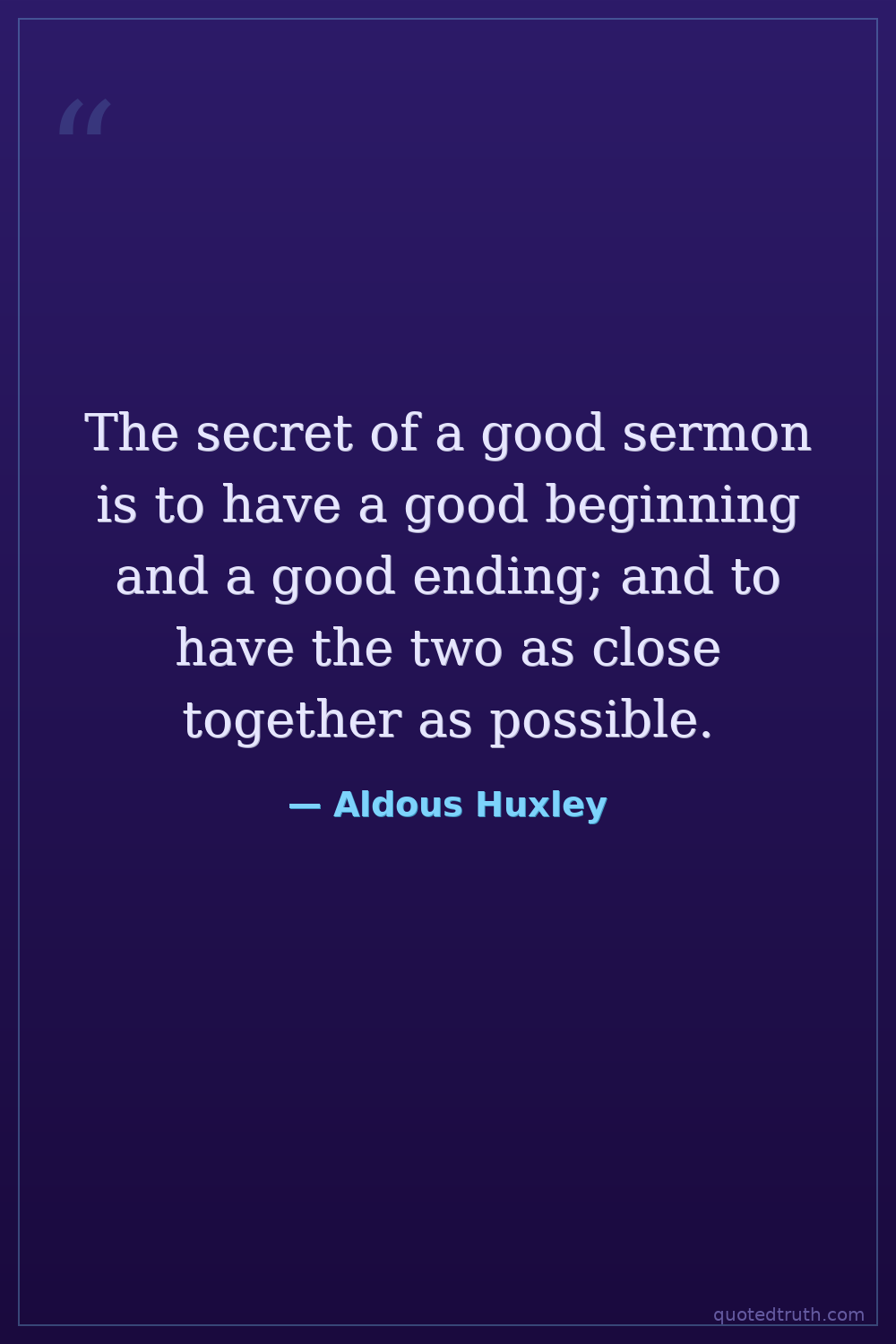 The secret of a good sermon is to have a good beginning and a good ending; and to have the two as close together as possible.