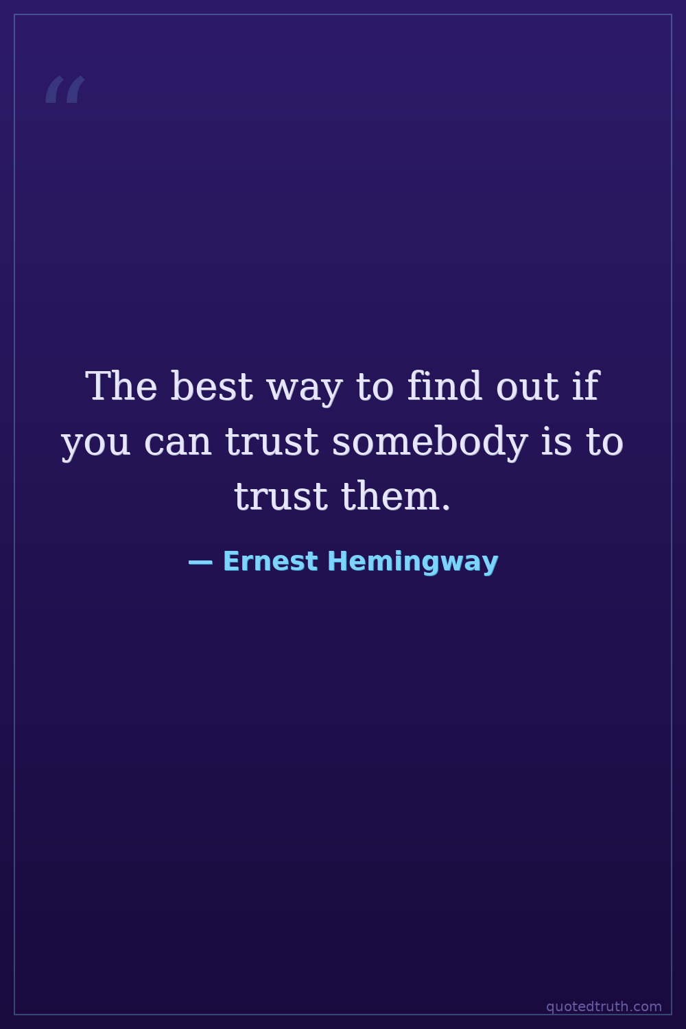 The best way to find out if you can trust somebody is to trust them.