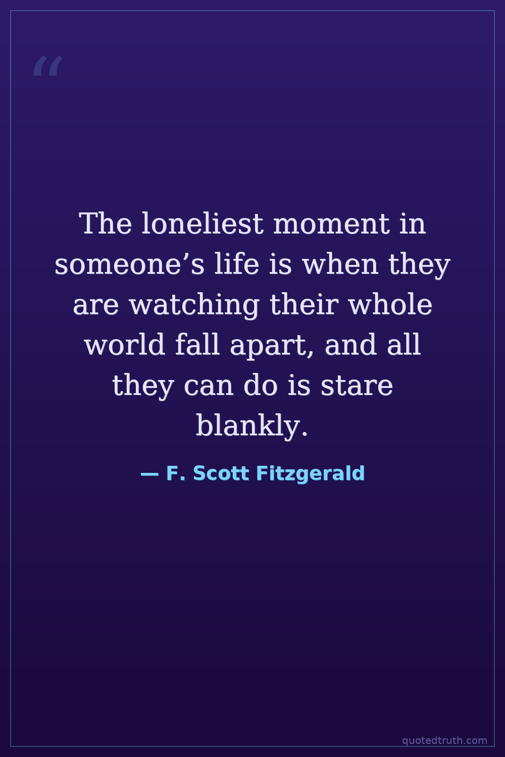 The loneliest moment in someone’s life is when they are watching their whole world fall apart, and all they can do is stare blankly.