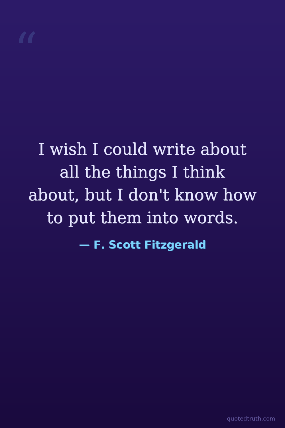 I wish I could write about all the things I think about, but I don't know how to put them into words.