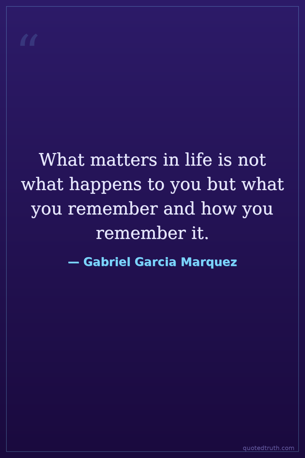 What matters in life is not what happens to you but what you remember and how you remember it.