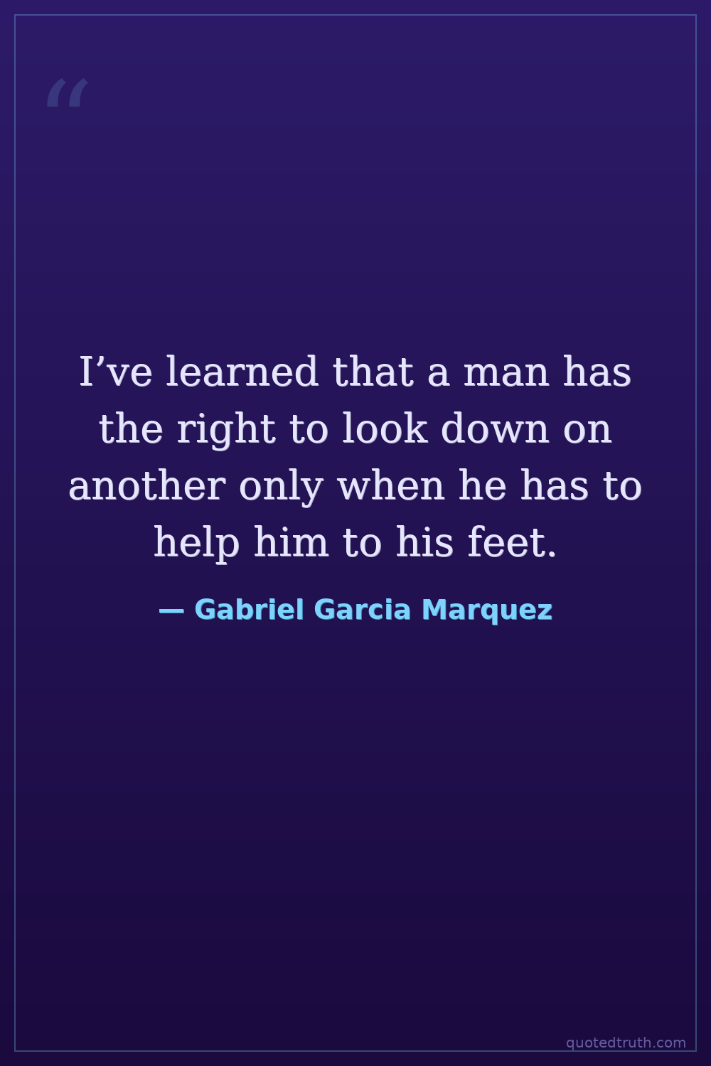 I’ve learned that a man has the right to look down on another only when he has to help him to his feet.