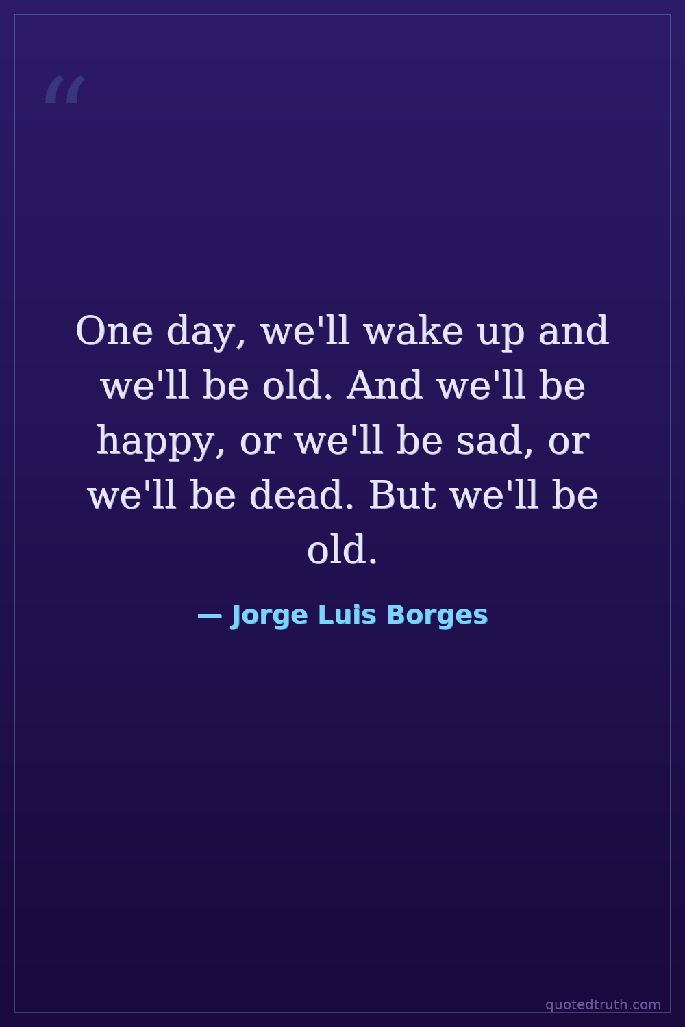 One day, we'll wake up and we'll be old. And we'll be happy, or we'll be sad, or we'll be dead. But we'll be old.