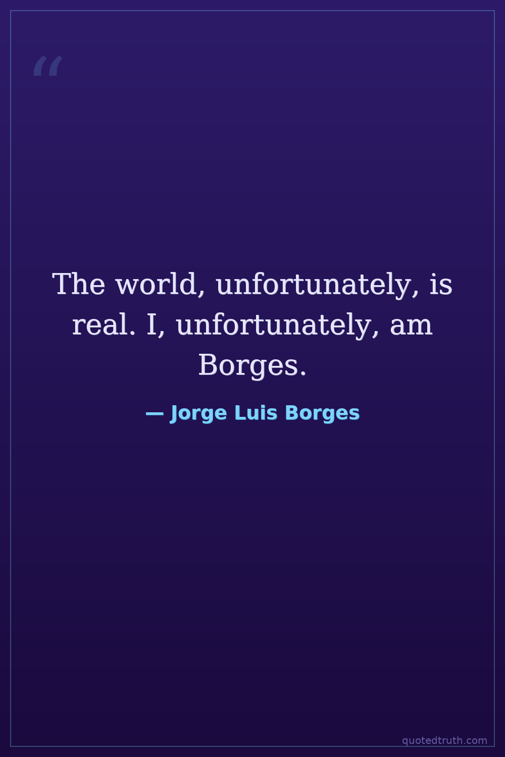 The world, unfortunately, is real. I, unfortunately, am Borges.