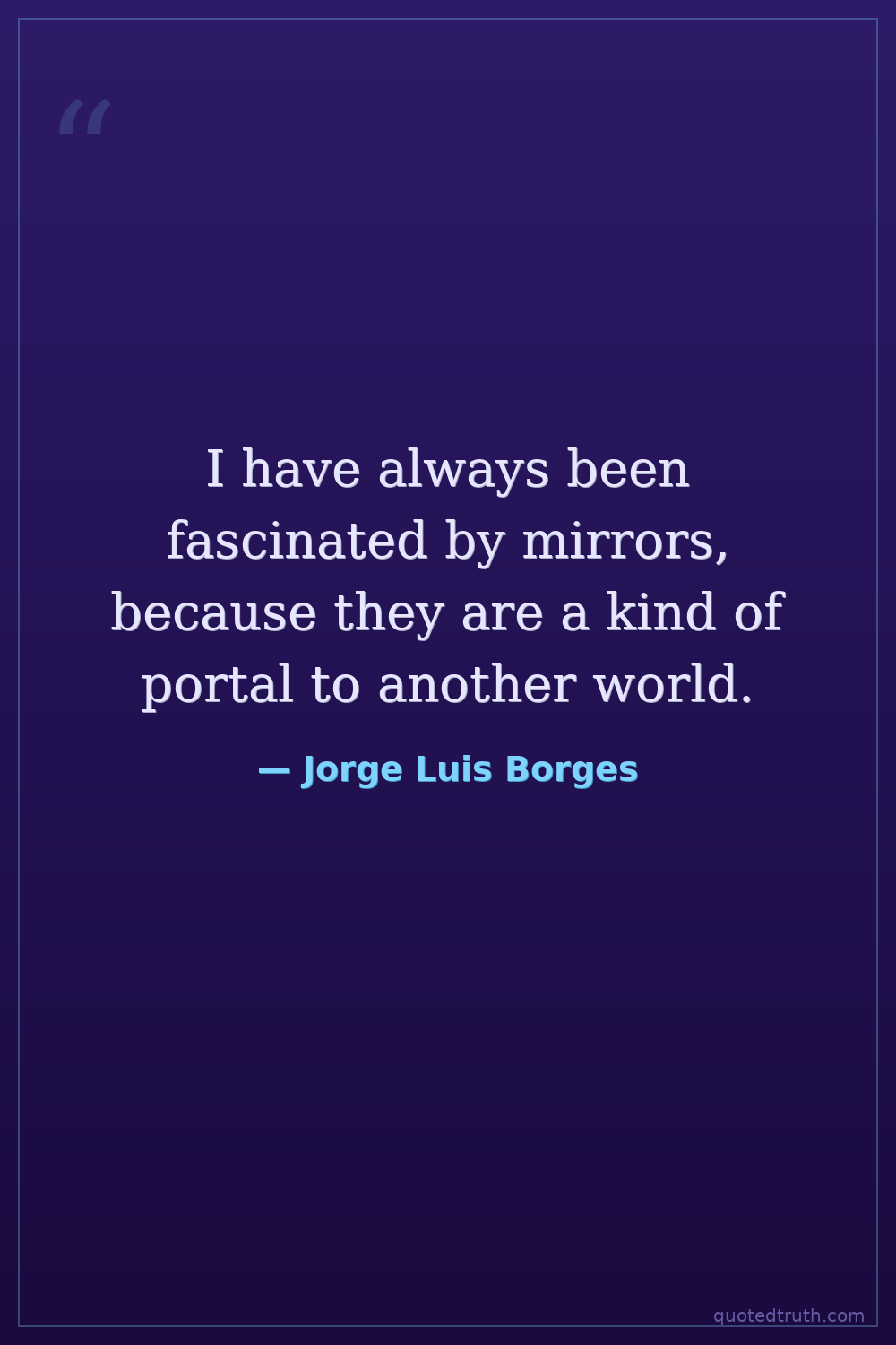 I have always been fascinated by mirrors, because they are a kind of portal to another world.