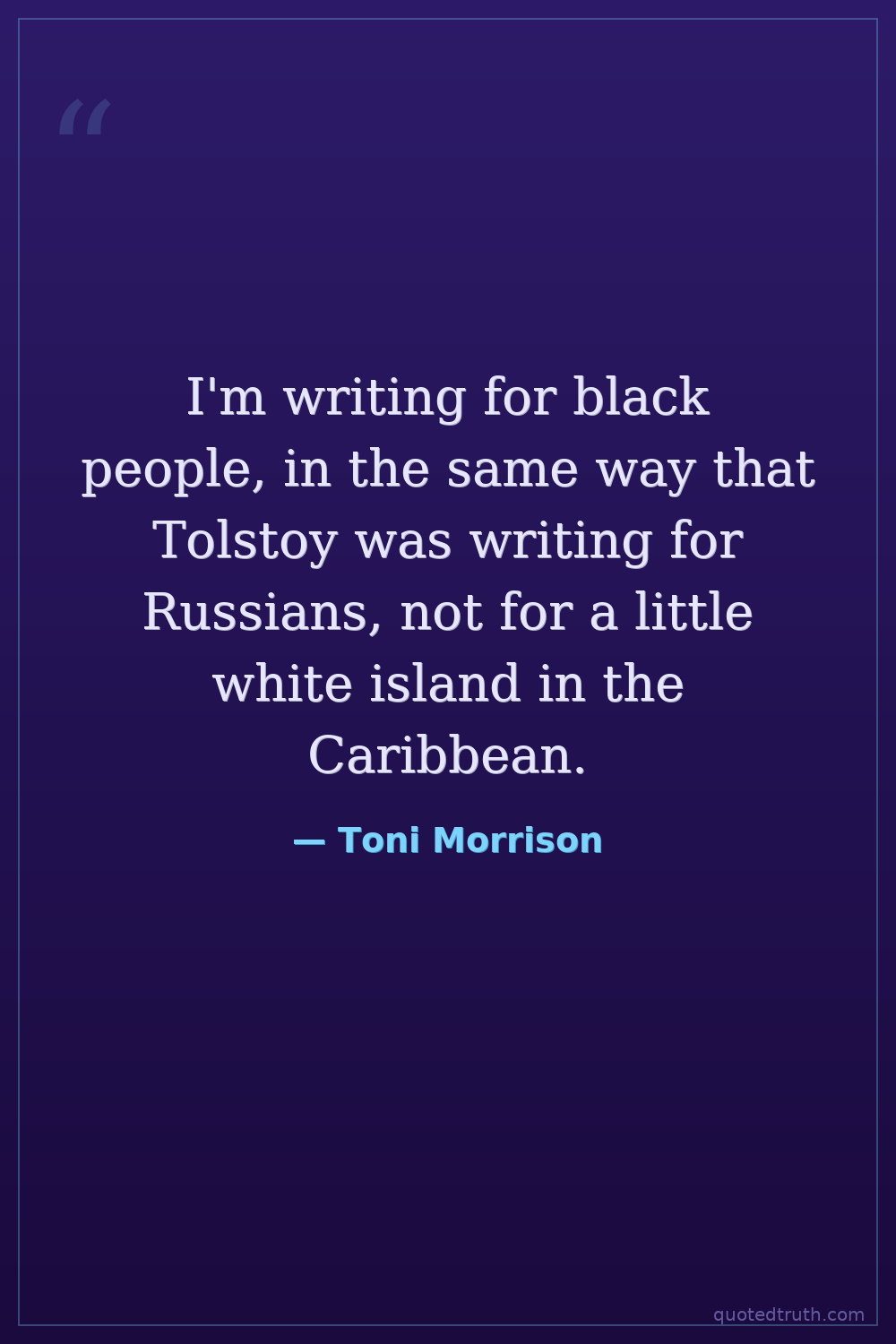 I'm writing for black people, in the same way that Tolstoy was writing for Russians, not for a little white island in the Caribbean.
