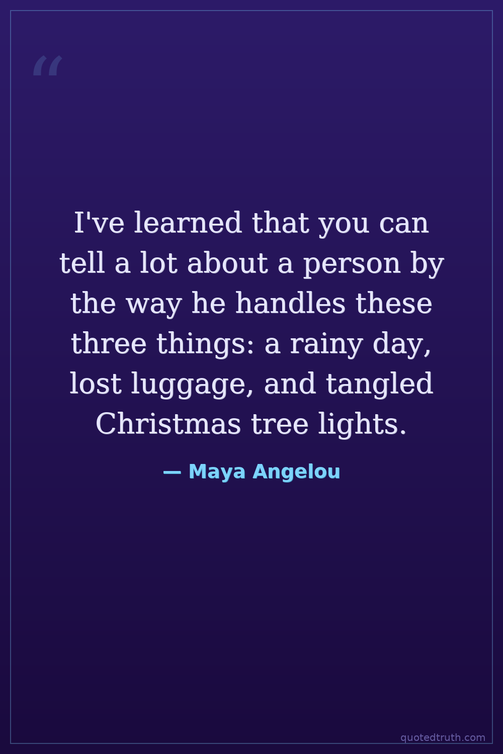 I've learned that you can tell a lot about a person by the way he handles these three things: a rainy day, lost luggage, and tangled Christmas tree lights.