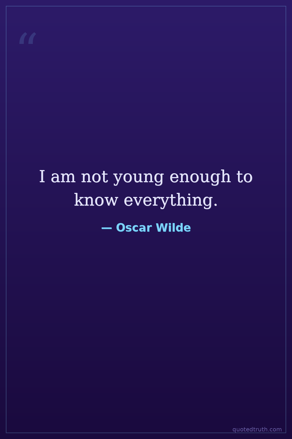 I am not young enough to know everything.