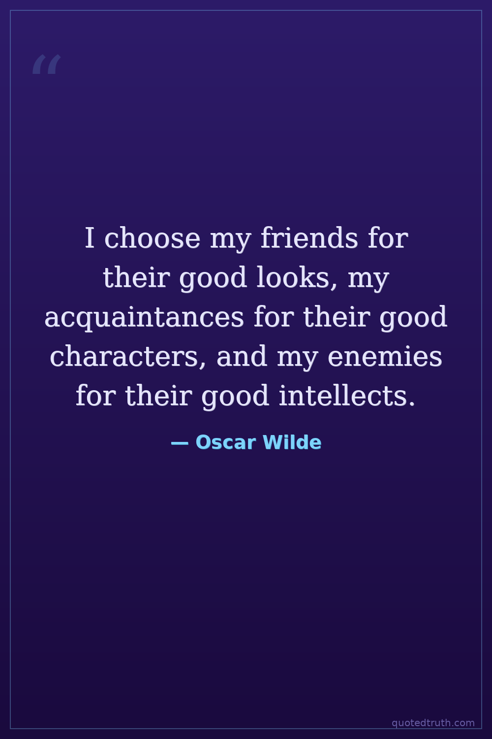 I choose my friends for their good looks, my acquaintances for their good characters, and my enemies for their good intellects.