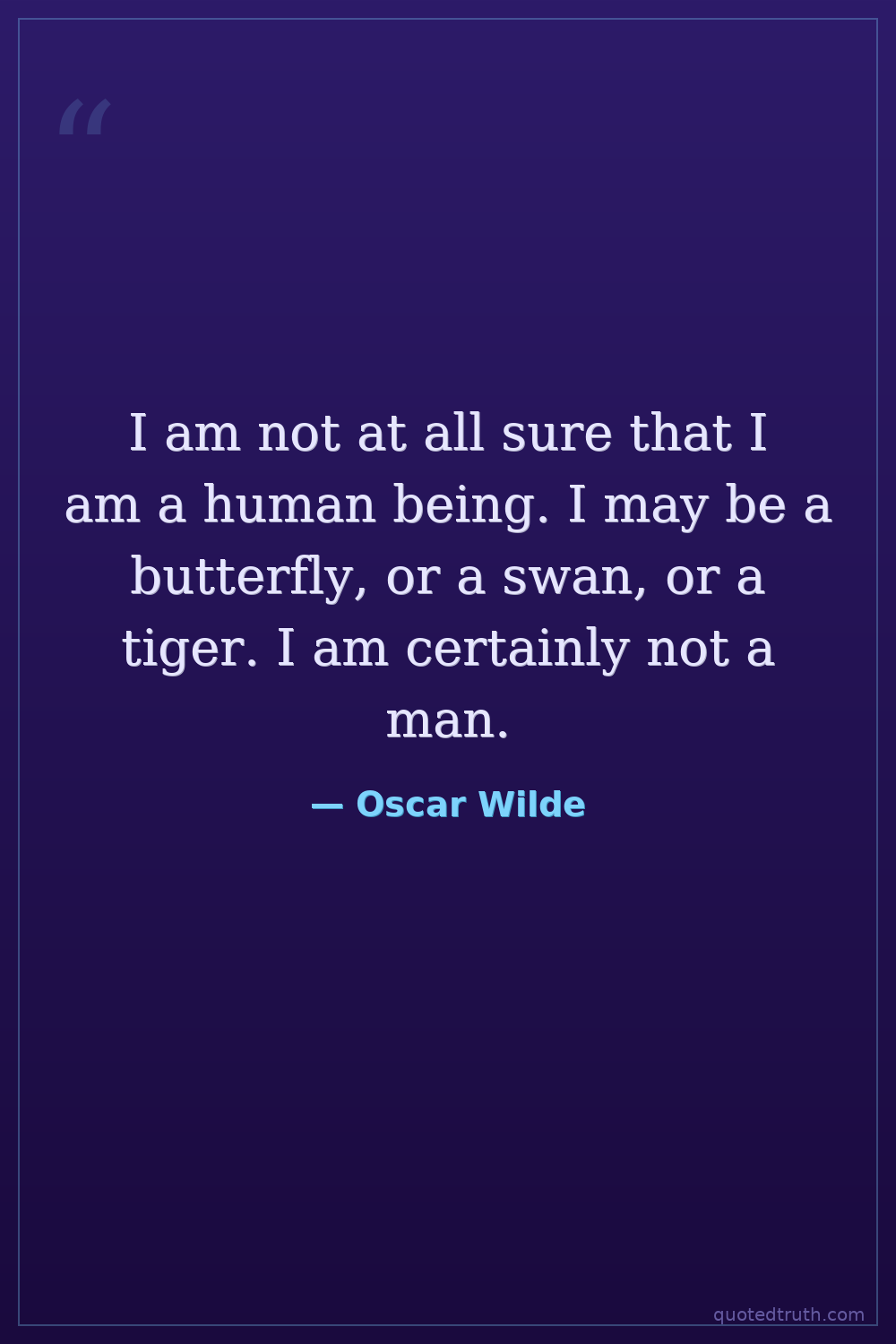 I am not at all sure that I am a human being. I may be a butterfly, or a swan, or a tiger. I am certainly not a man.