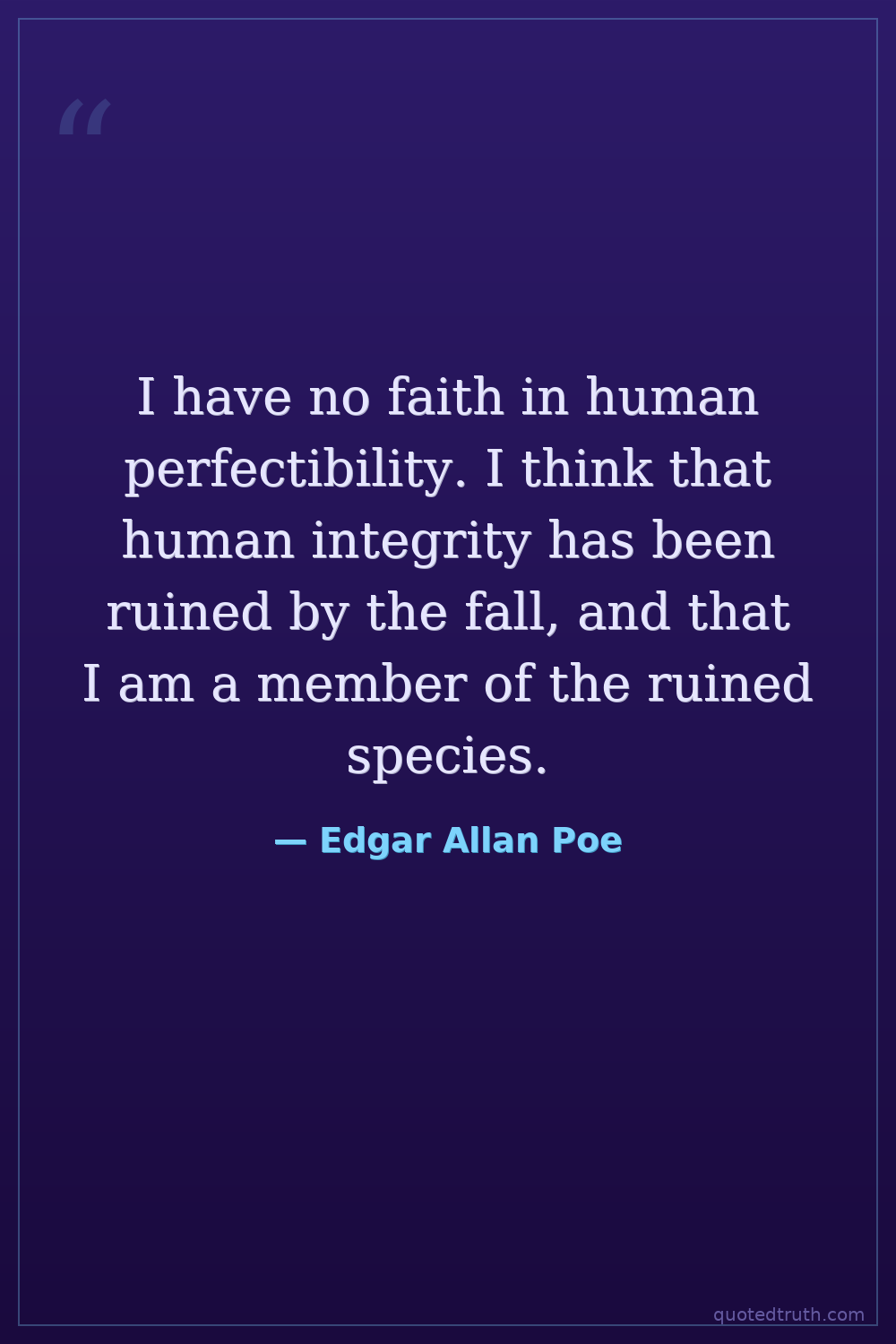 I have no faith in human perfectibility. I think that human integrity has been ruined by the fall, and that I am a member of the ruined species.