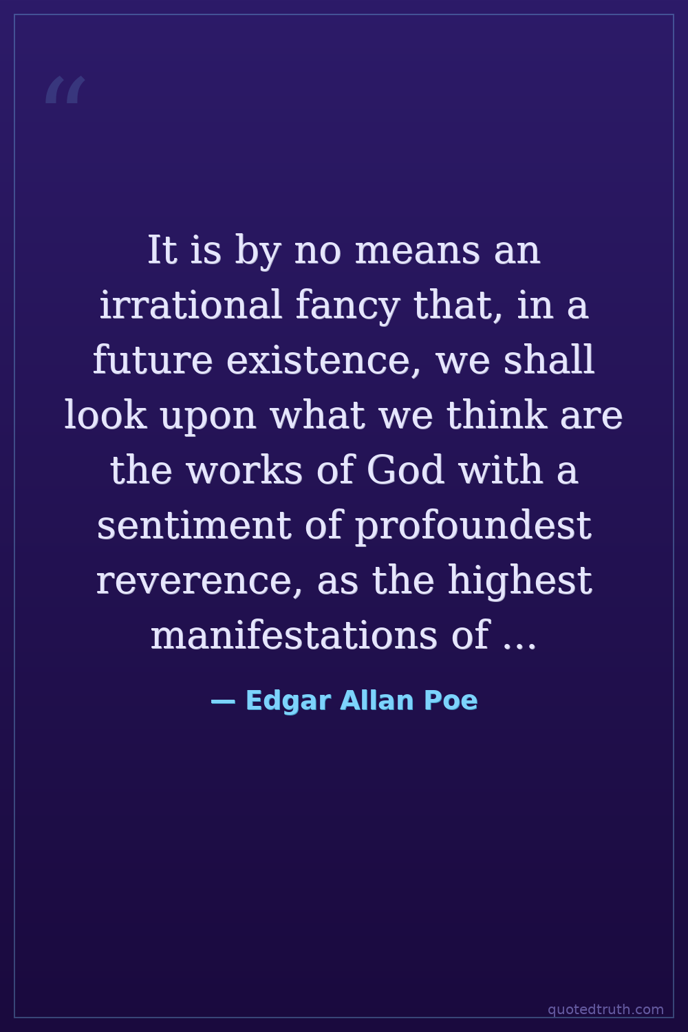 It is by no means an irrational fancy that, in a future existence, we shall look upon what we think are the works of God with a sentiment of profoundest reverence, as the highest manifestations of the beautiful.