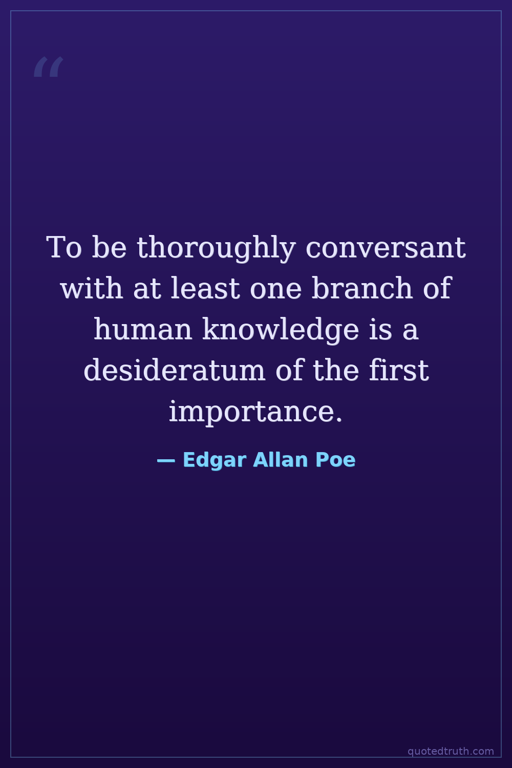 To be thoroughly conversant with at least one branch of human knowledge is a desideratum of the first importance.
