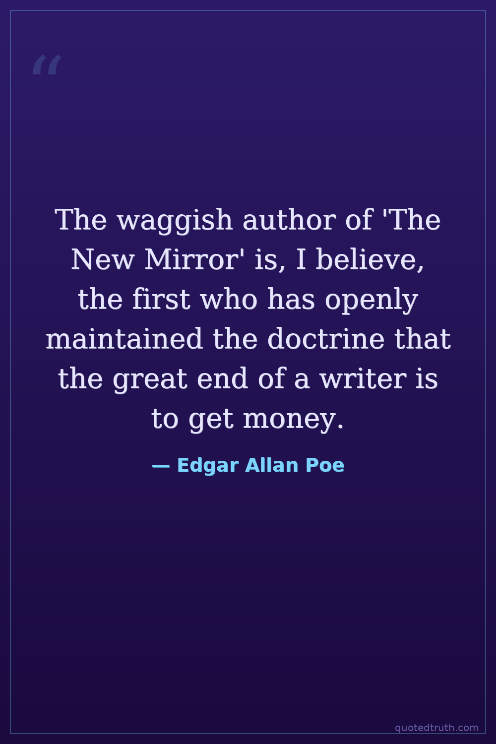 The waggish author of 'The New Mirror' is, I believe, the first who has openly maintained the doctrine that the great end of a writer is to get money.