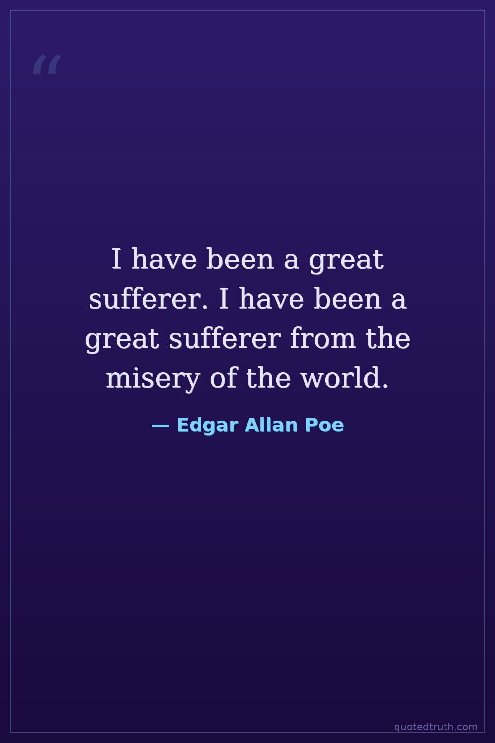 I have been a great sufferer. I have been a great sufferer from the misery of the world.