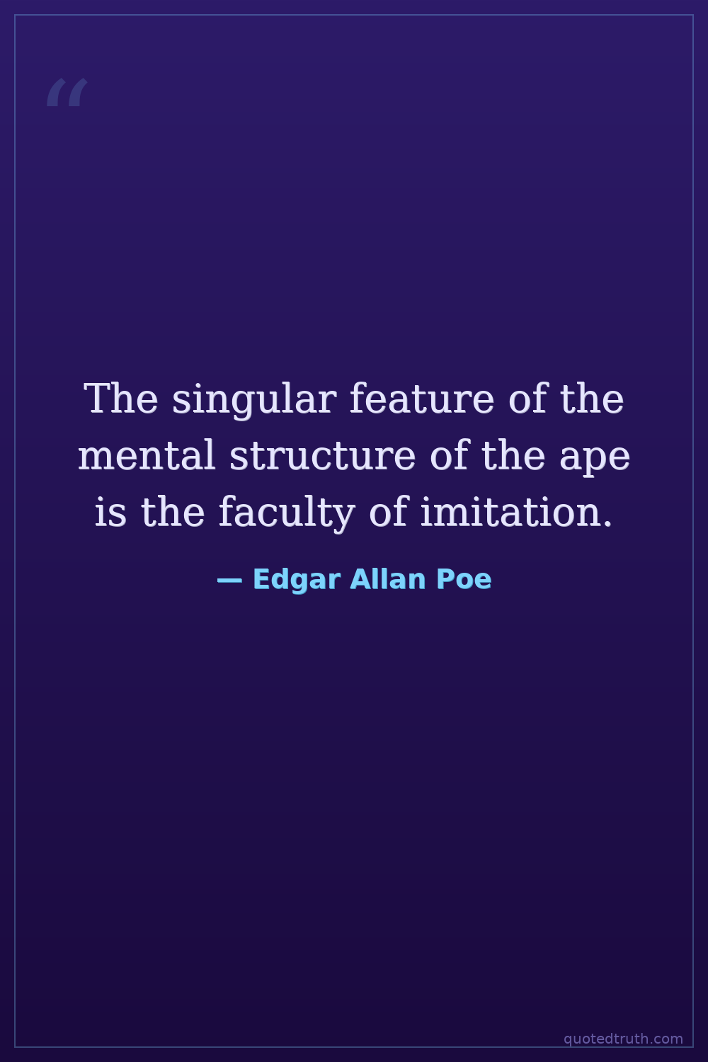 The singular feature of the mental structure of the ape is the faculty of imitation.