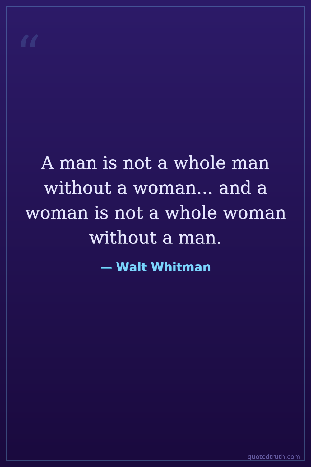 A man is not a whole man without a woman... and a woman is not a whole woman without a man.