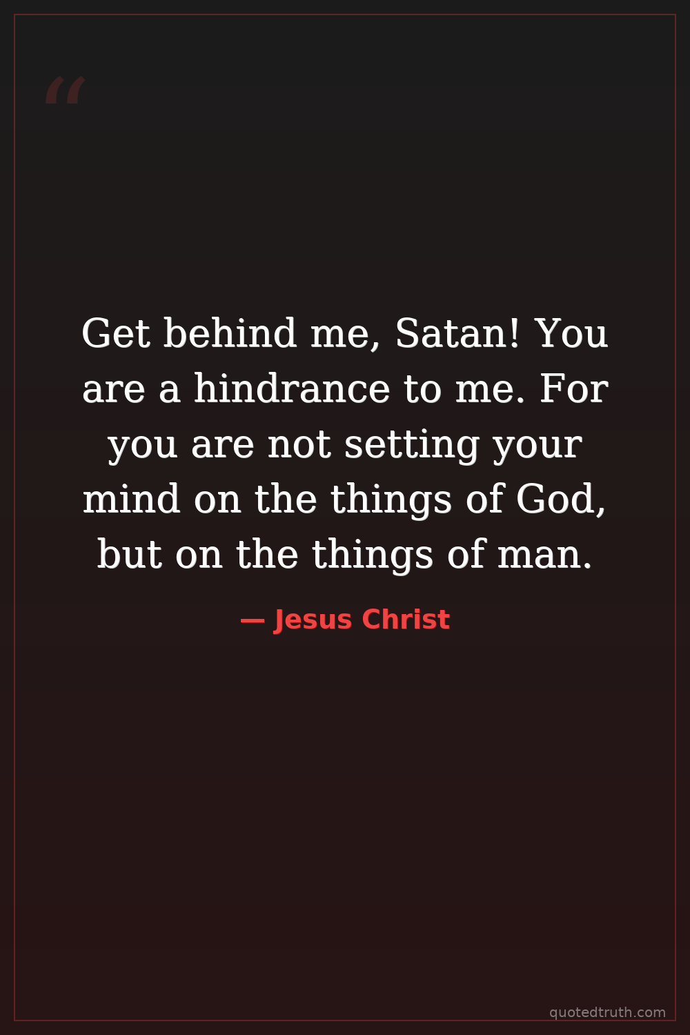 Get behind me, Satan! You are a hindrance to me. For you are not setting your mind on the things of God, but on the things of man.