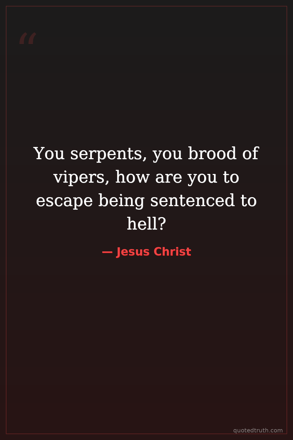 You serpents, you brood of vipers, how are you to escape being sentenced to hell?