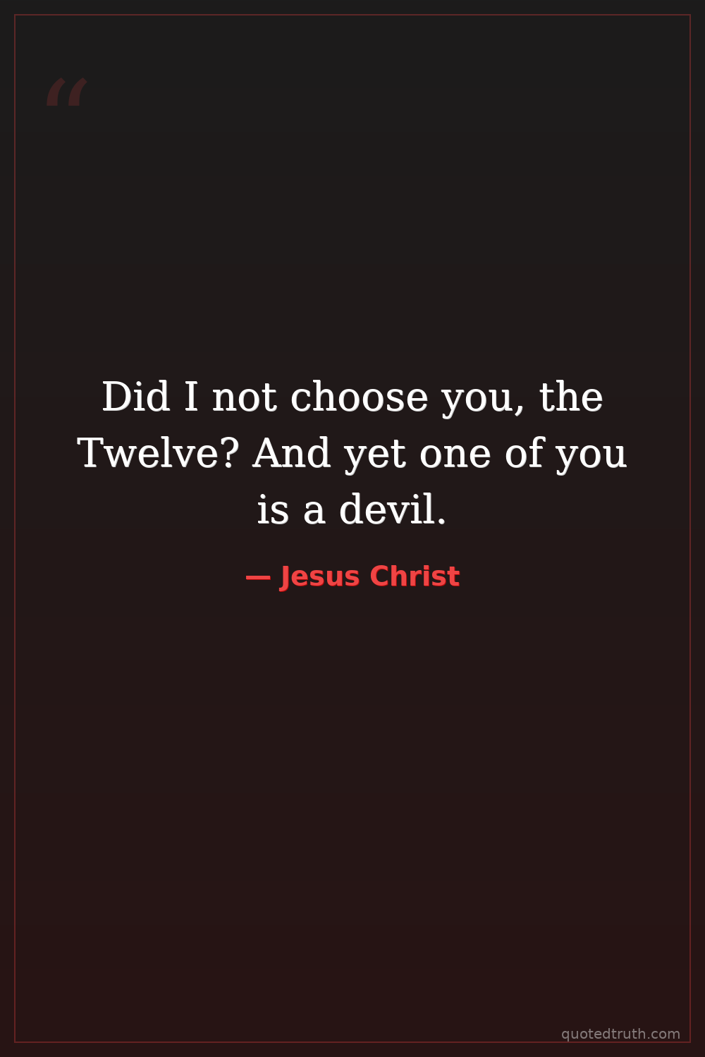 Did I not choose you, the Twelve? And yet one of you is a devil.