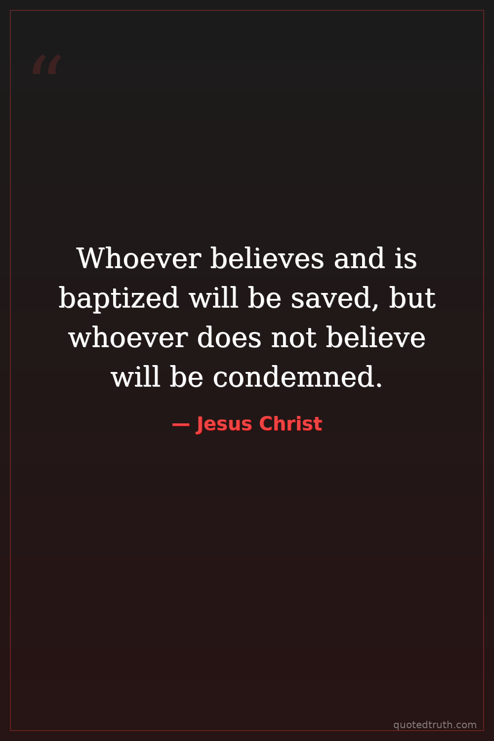 Whoever believes and is baptized will be saved, but whoever does not believe will be condemned.