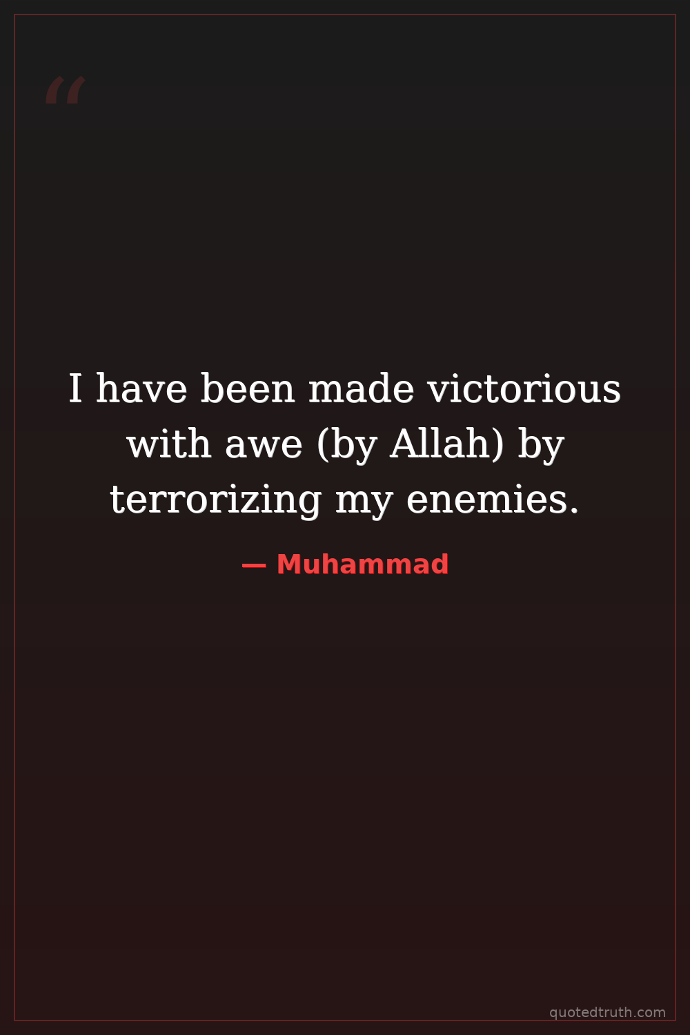 I have been made victorious with awe (by Allah) by terrorizing my enemies.