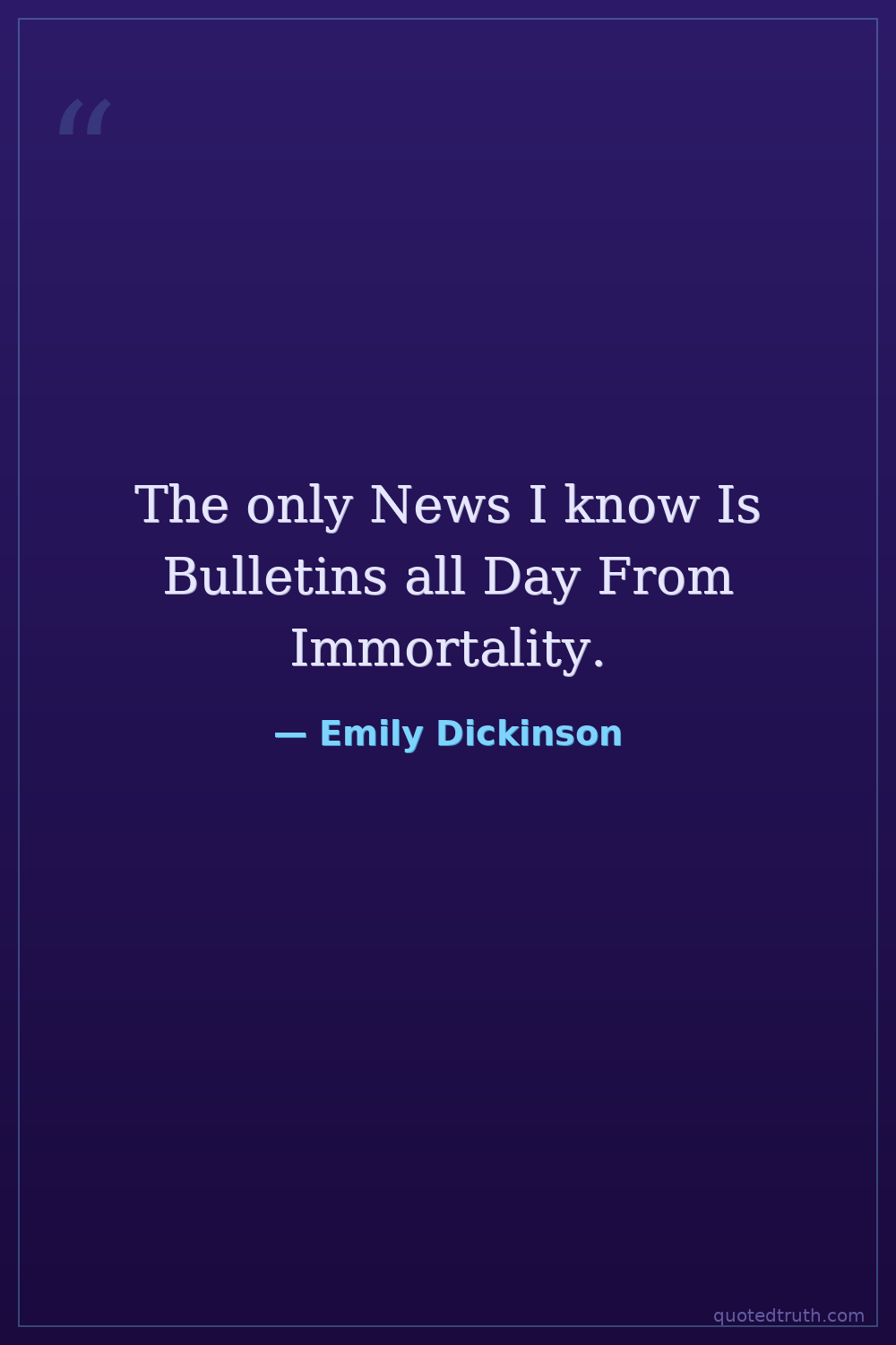 The only News I know Is Bulletins all Day From Immortality.