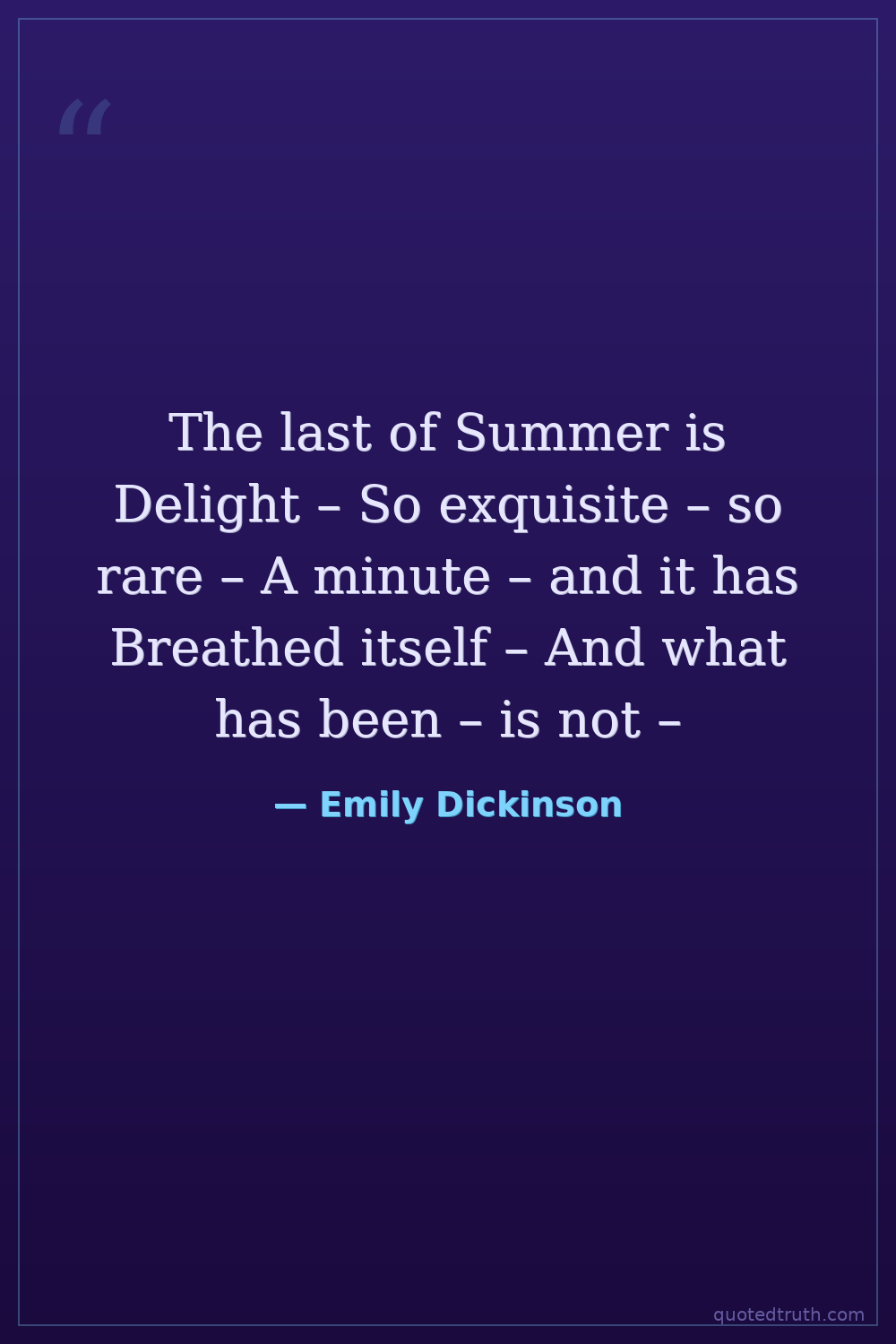 The last of Summer is Delight – So exquisite – so rare – A minute – and it has Breathed itself – And what has been – is not –