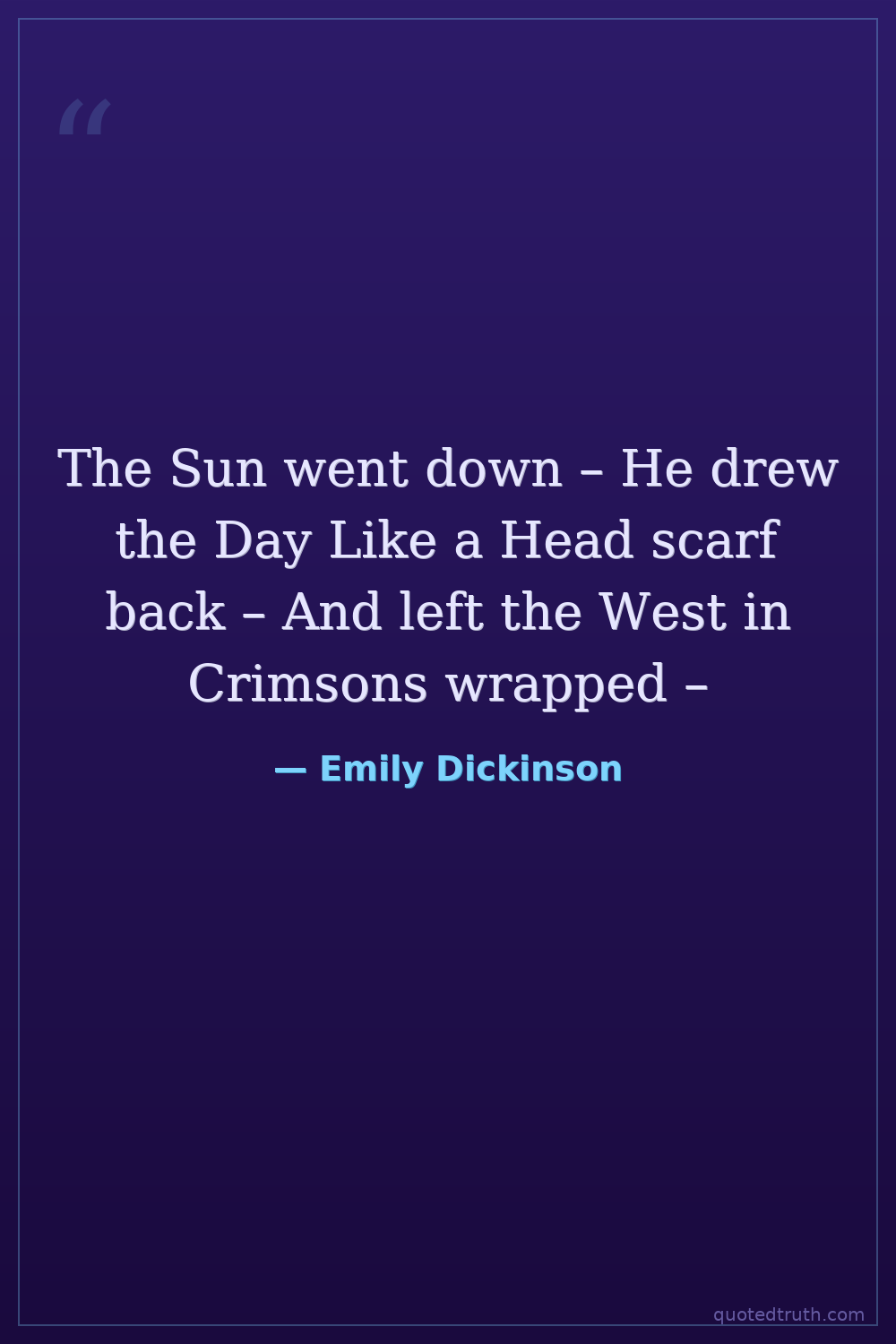 The Sun went down – He drew the Day Like a Head scarf back – And left the West in Crimsons wrapped –