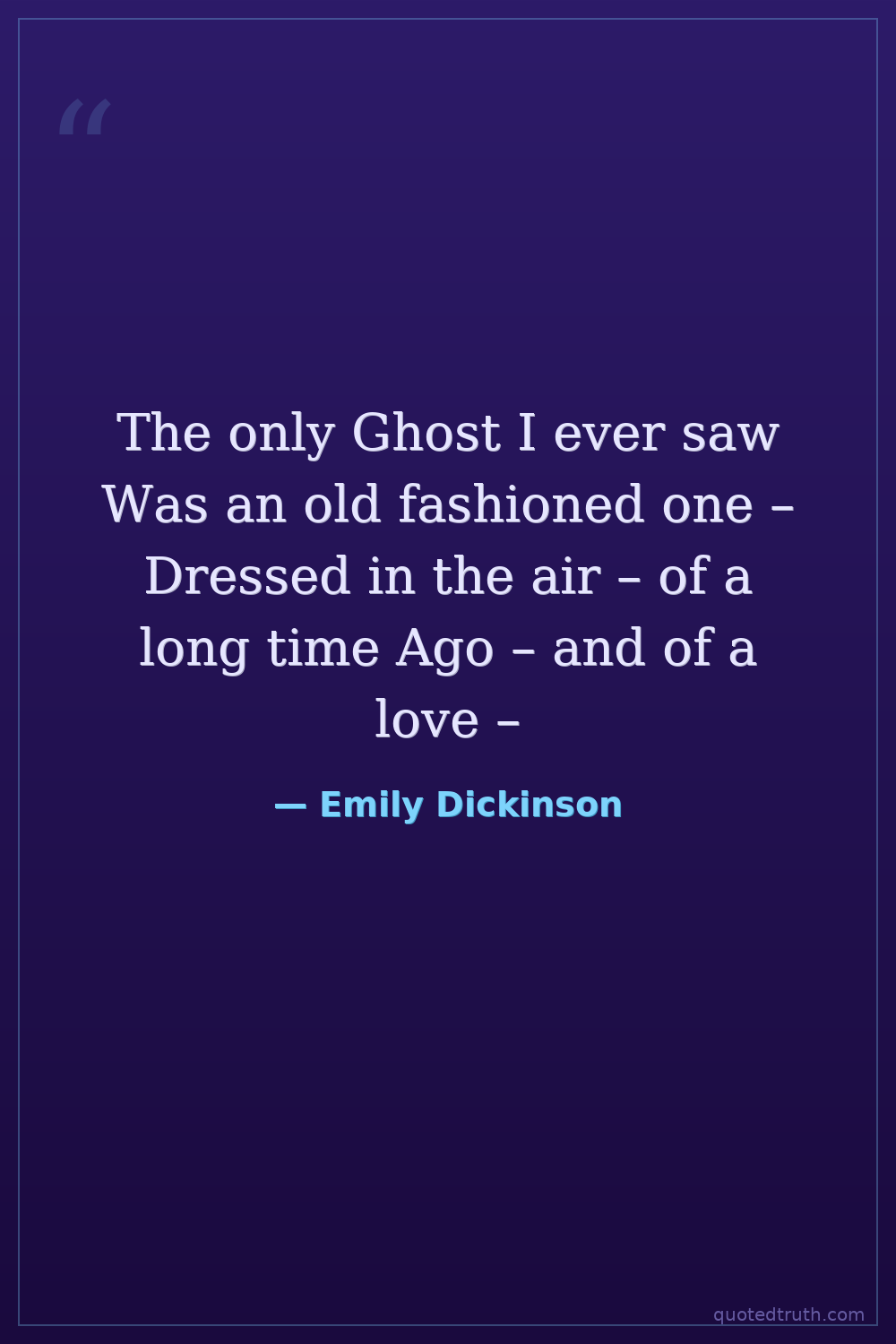 The only Ghost I ever saw Was an old fashioned one – Dressed in the air – of a long time Ago – and of a love –