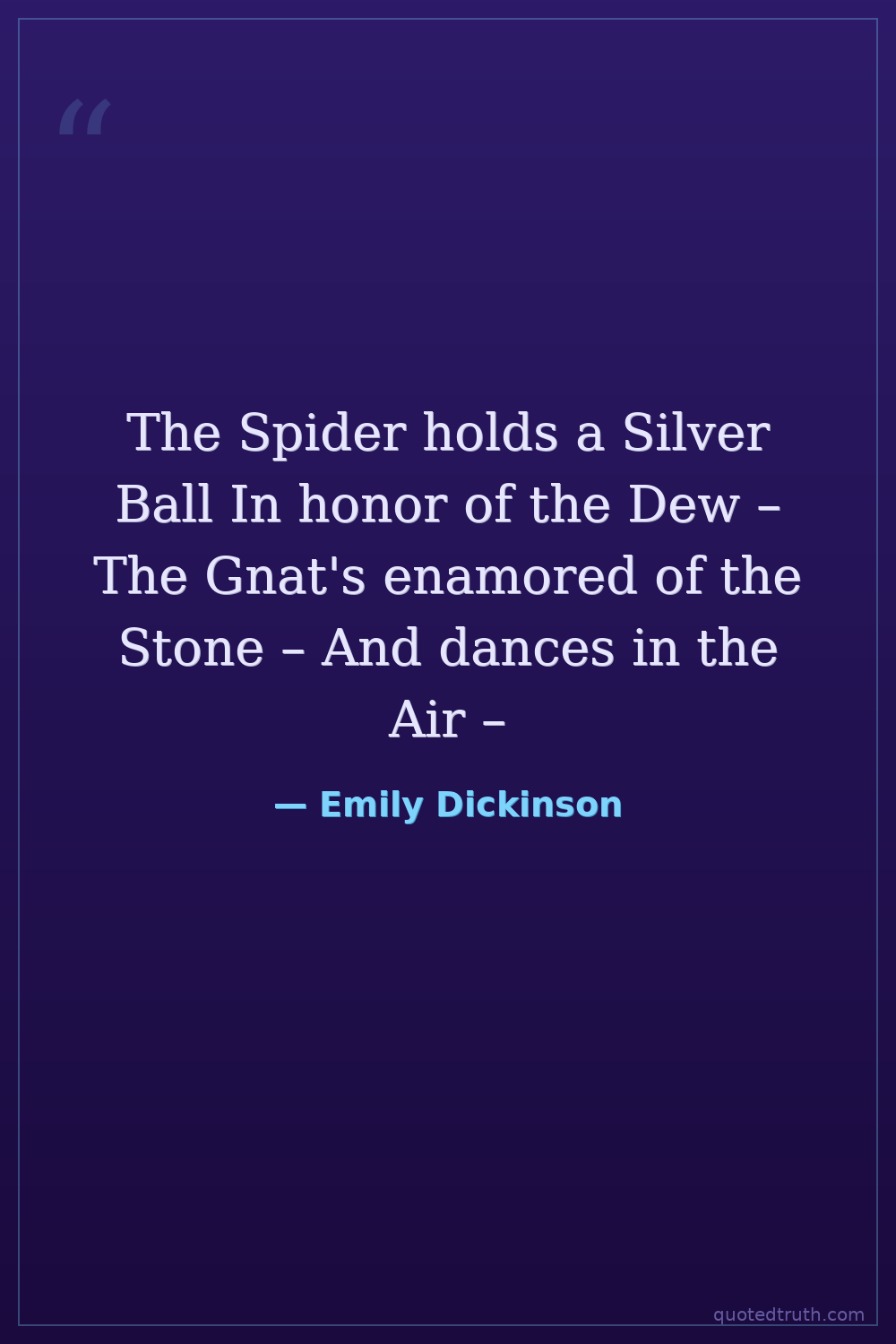The Spider holds a Silver Ball In honor of the Dew – The Gnat's enamored of the Stone – And dances in the Air –
