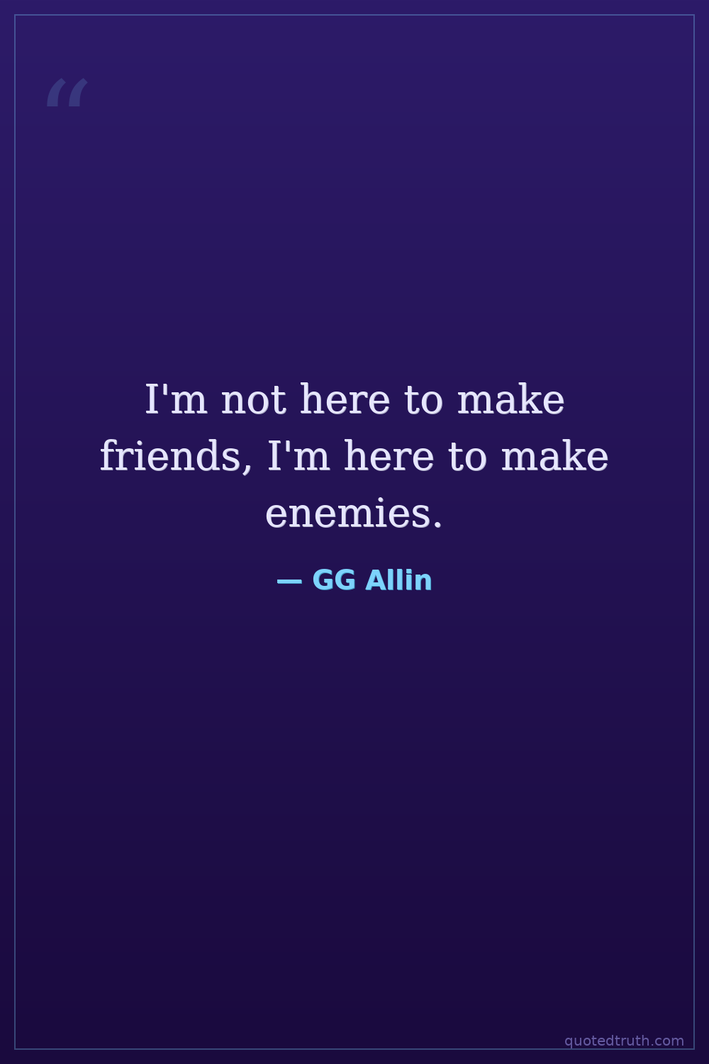 I'm not here to make friends, I'm here to make enemies.