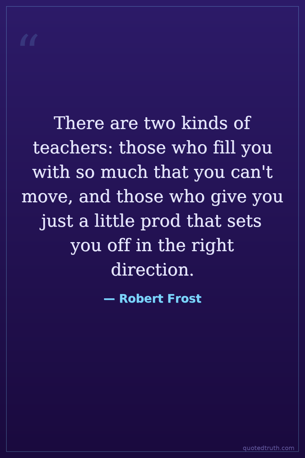 There are two kinds of teachers: those who fill you with so much that you can't move, and those who give you just a little prod that sets you off in the right direction.