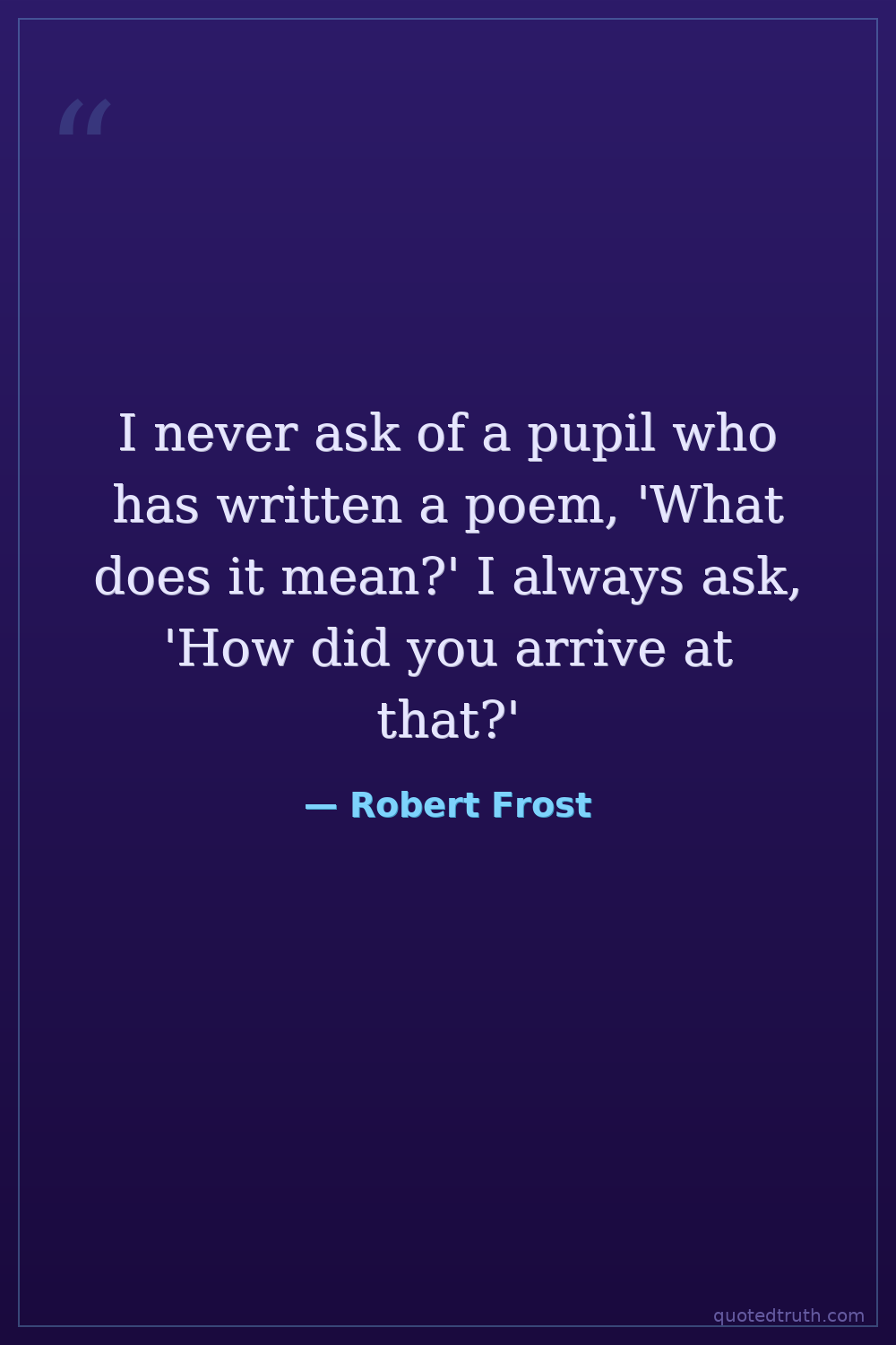 I never ask of a pupil who has written a poem, 'What does it mean?' I always ask, 'How did you arrive at that?'