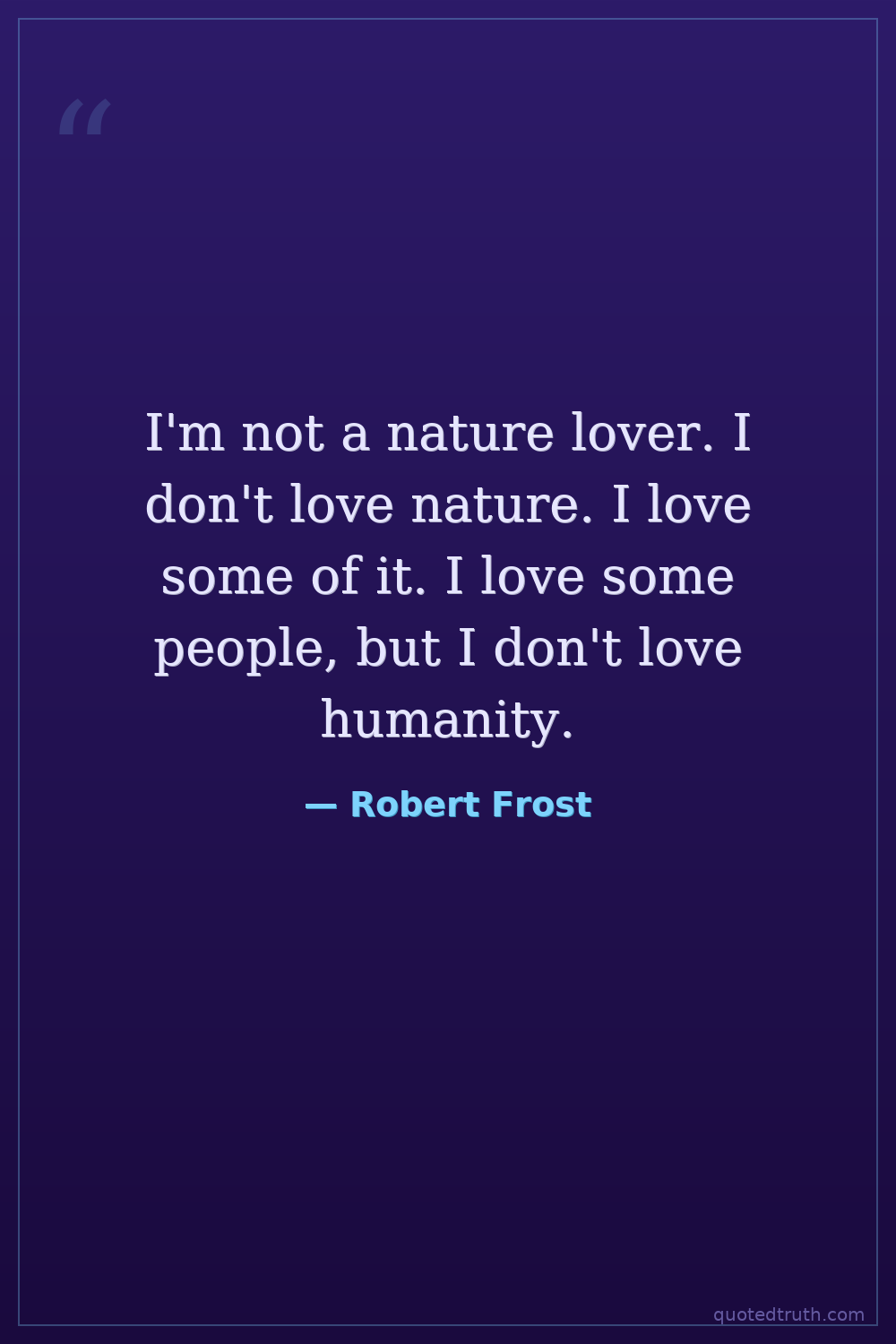 I'm not a nature lover. I don't love nature. I love some of it. I love some people, but I don't love humanity.
