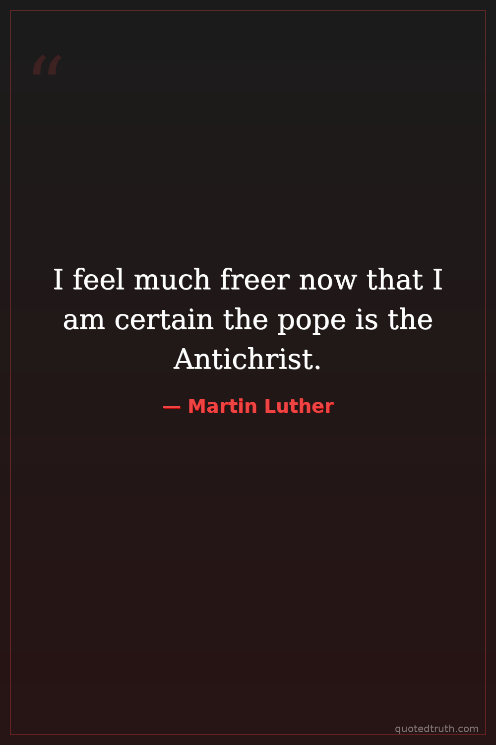 I feel much freer now that I am certain the pope is the Antichrist.