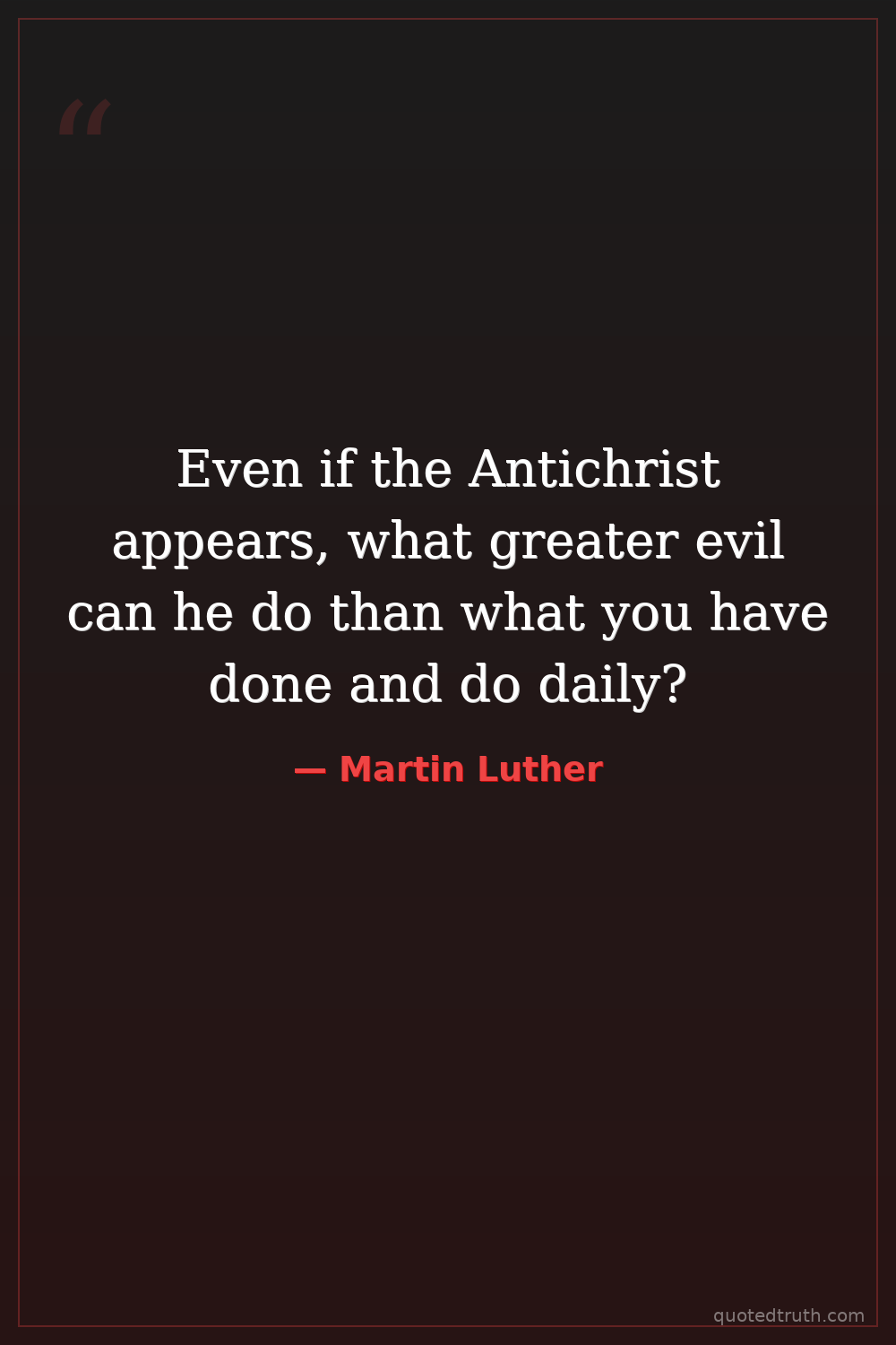 Even if the Antichrist appears, what greater evil can he do than what you have done and do daily?