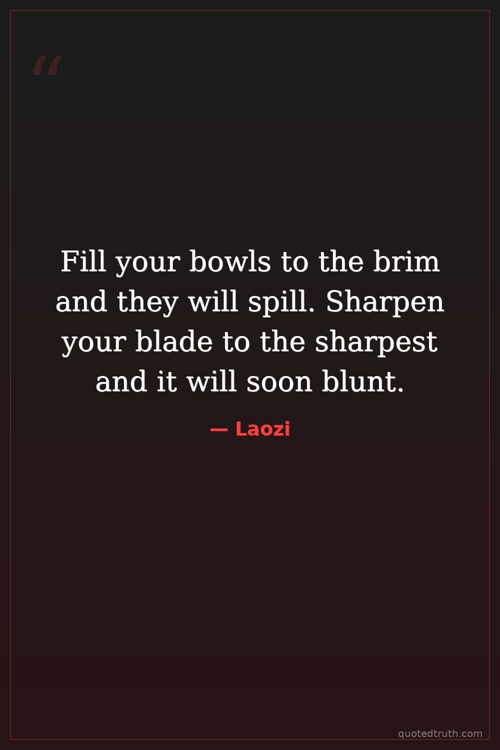 Fill your bowls to the brim and they will spill. Sharpen your blade to the sharpest and it will soon blunt.