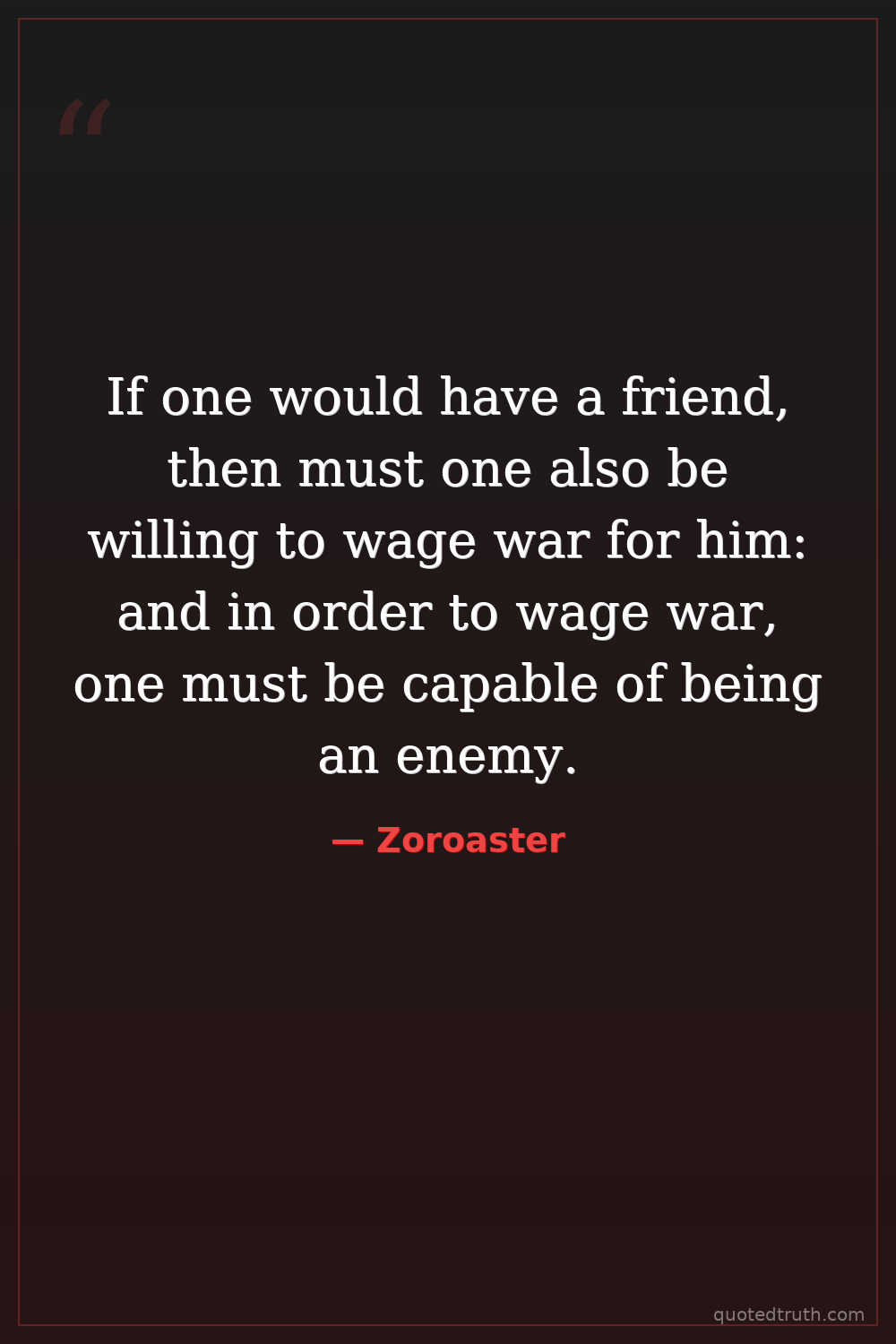 If one would have a friend, then must one also be willing to wage war for him: and in order to wage war, one must be capable of being an enemy.