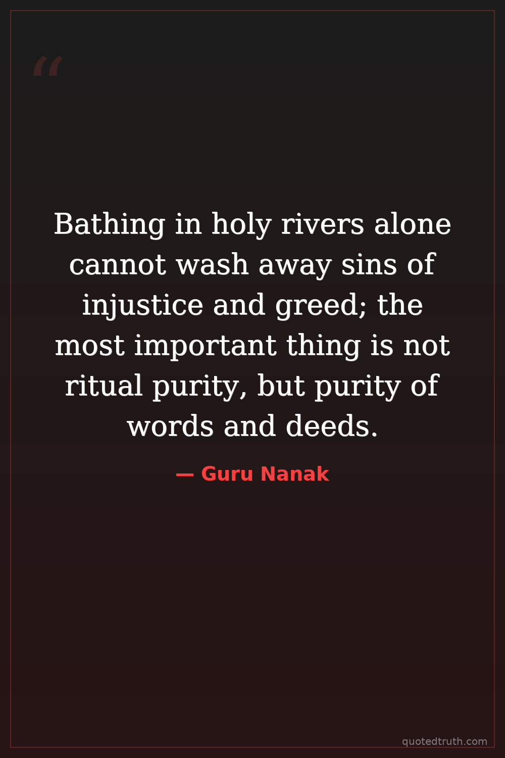 Bathing in holy rivers alone cannot wash away sins of injustice and greed; the most important thing is not ritual purity, but purity of words and deeds.