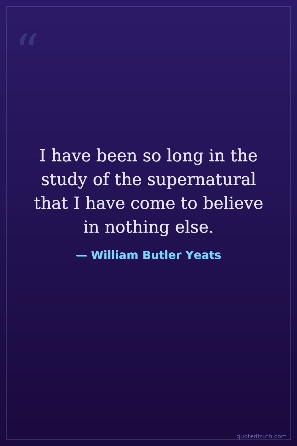 I have been so long in the study of the supernatural that I have come to believe in nothing else.
