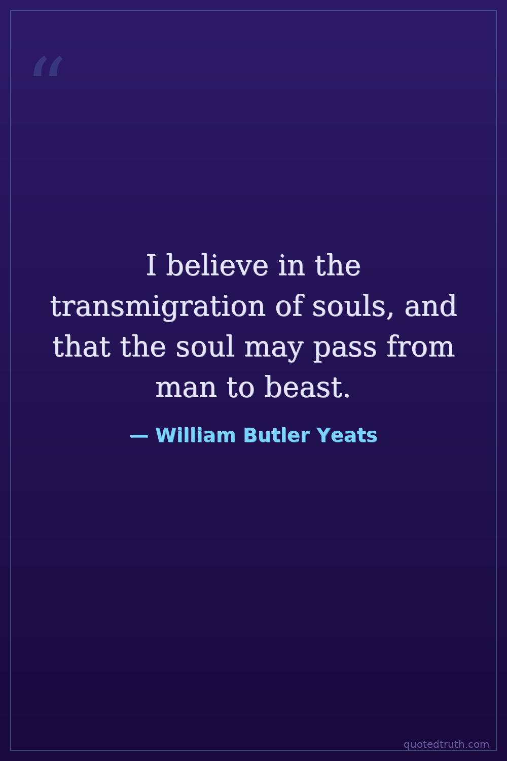I believe in the transmigration of souls, and that the soul may pass from man to beast.