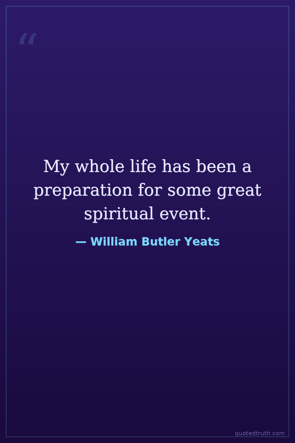 My whole life has been a preparation for some great spiritual event.