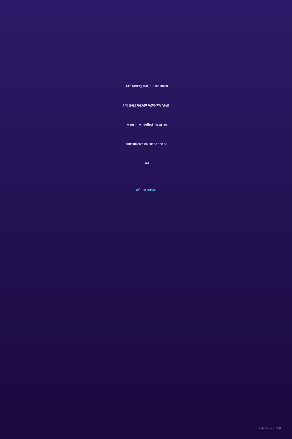Burn worldly love, rub the ashes and make ink of it, make the heart the pen, the intellect the writer, write that which has no end or limit.