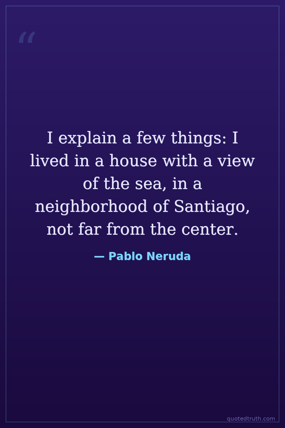 I explain a few things: I lived in a house with a view of the sea, in a neighborhood of Santiago, not far from the center.
