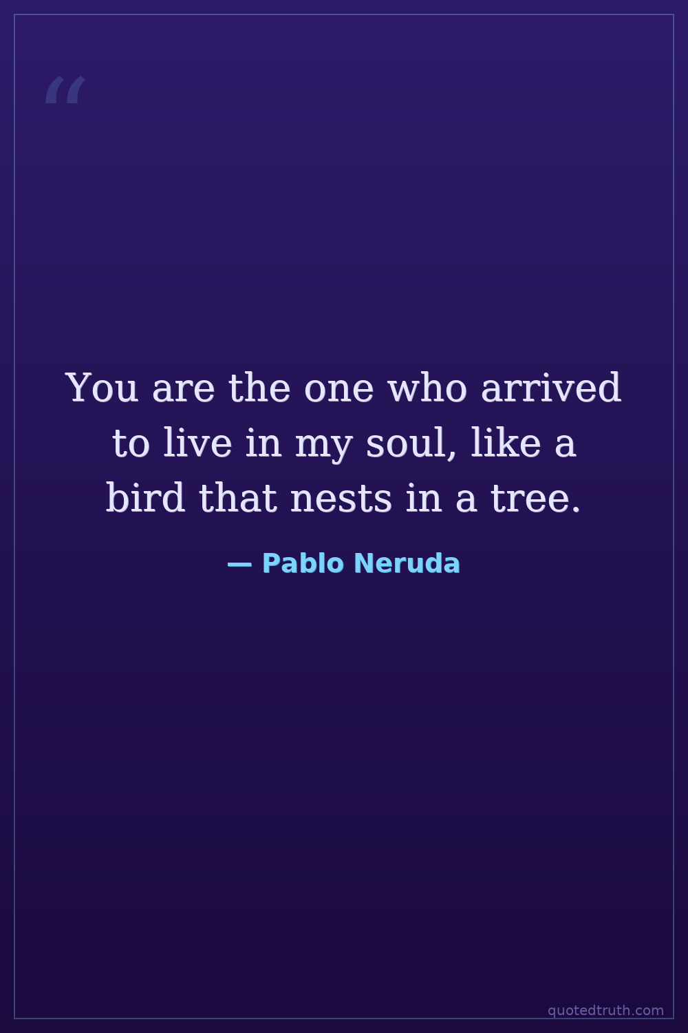 You are the one who arrived to live in my soul, like a bird that nests in a tree.