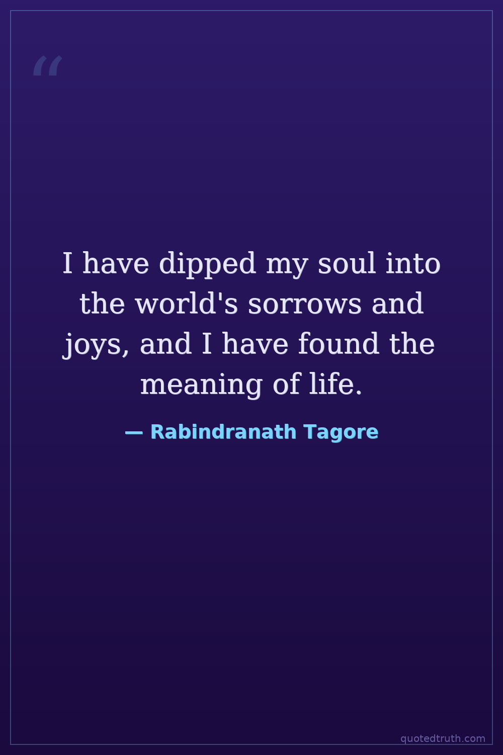 I have dipped my soul into the world's sorrows and joys, and I have found the meaning of life.