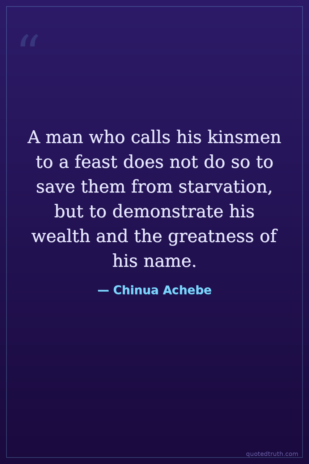 A man who calls his kinsmen to a feast does not do so to save them from starvation, but to demonstrate his wealth and the greatness of his name.